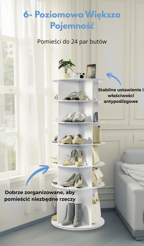 Obrotowy stojak 6-poziomowy, który maksymalnie wykorzystuje każdą przestrzeń.